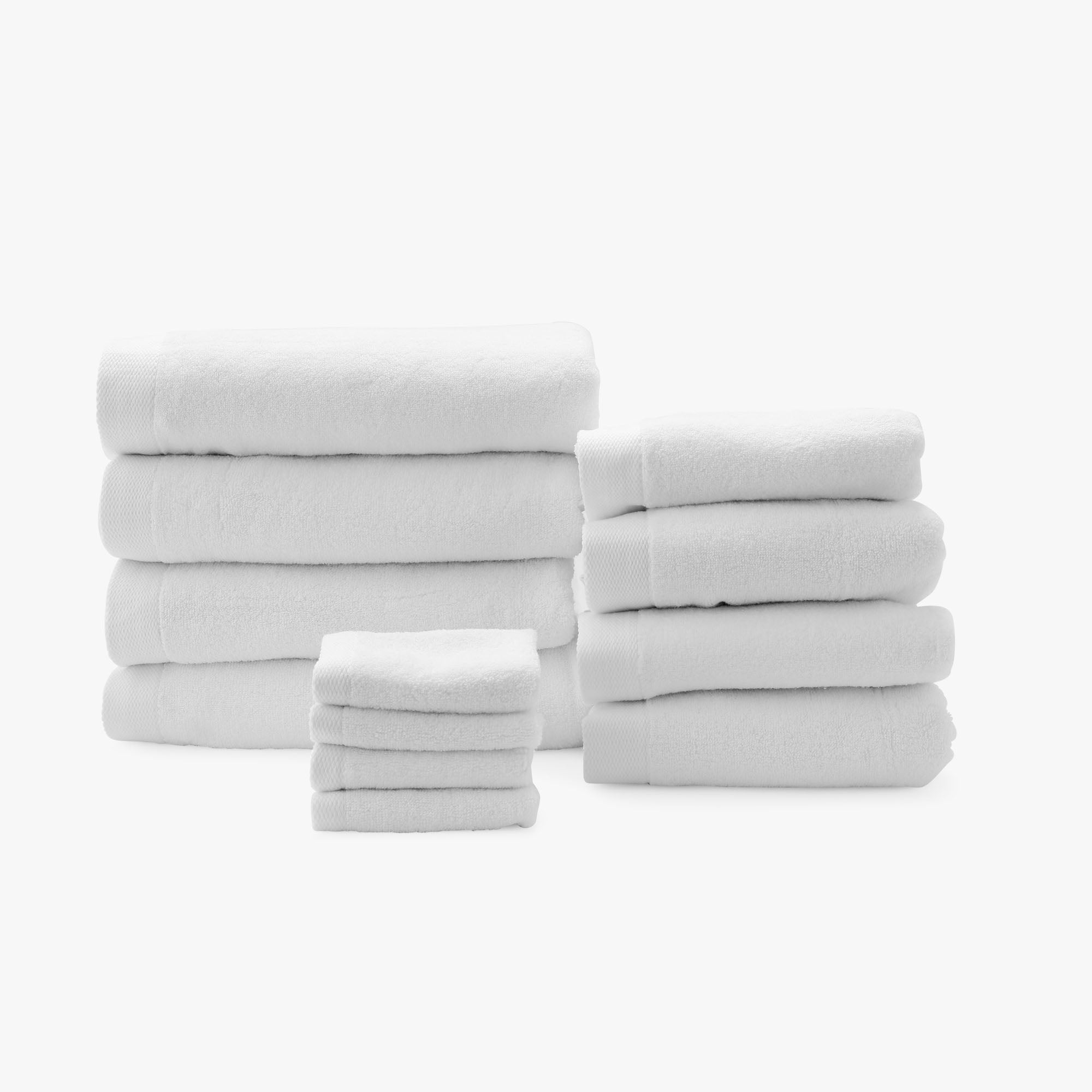 Includes: 4 bath sheets OR bath towels, 4 hand towels and 4 wash cloths.