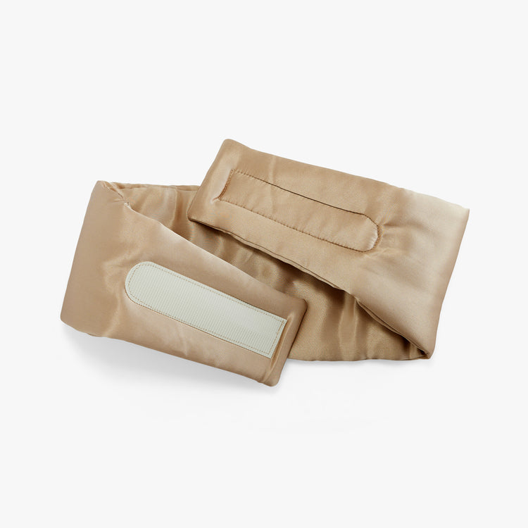 Crafted from 100% mulberry silk, it protects hair and skin from friction while providing a gentle, breathable touch. The cloud-like poly fill softly cushions and fully blocks light, helping you relax wherever you are. A wraparound Velcro enclosure ensures a custom, stay-put fit without slipping or tugging.